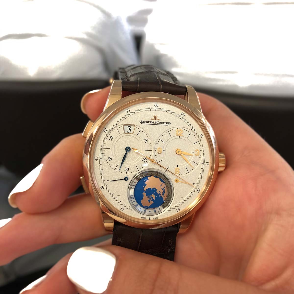 Complice de vos voyages, la montre Duomètre Unique Travel Time en or rose vous accompagne avec élégance sur tous les continents. Un modèle qui allie la technique du Calibre Jaeger-LeCoultre doté du concept Dual-Wing aux finitions horlogères des plus raffinées.